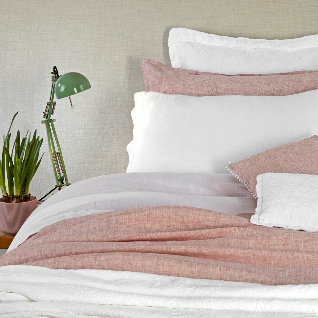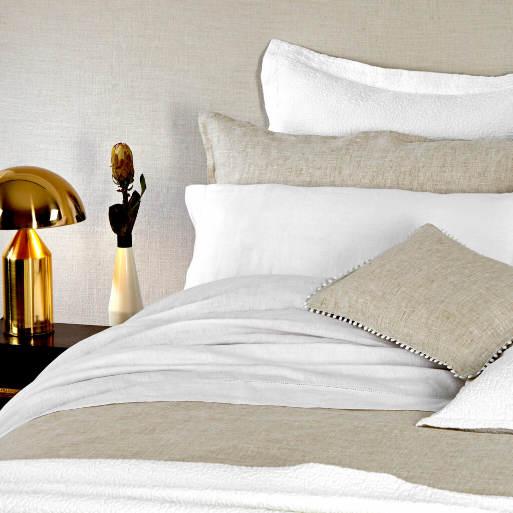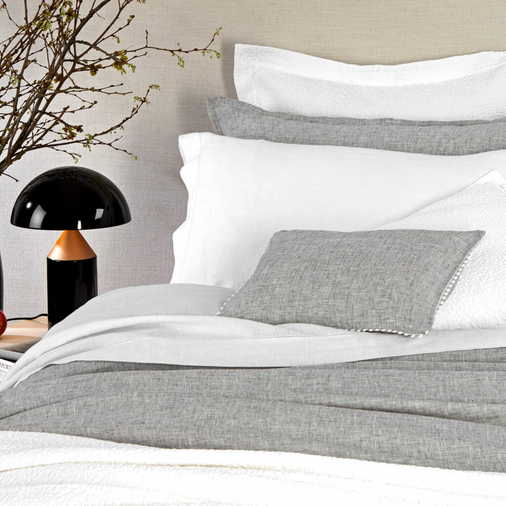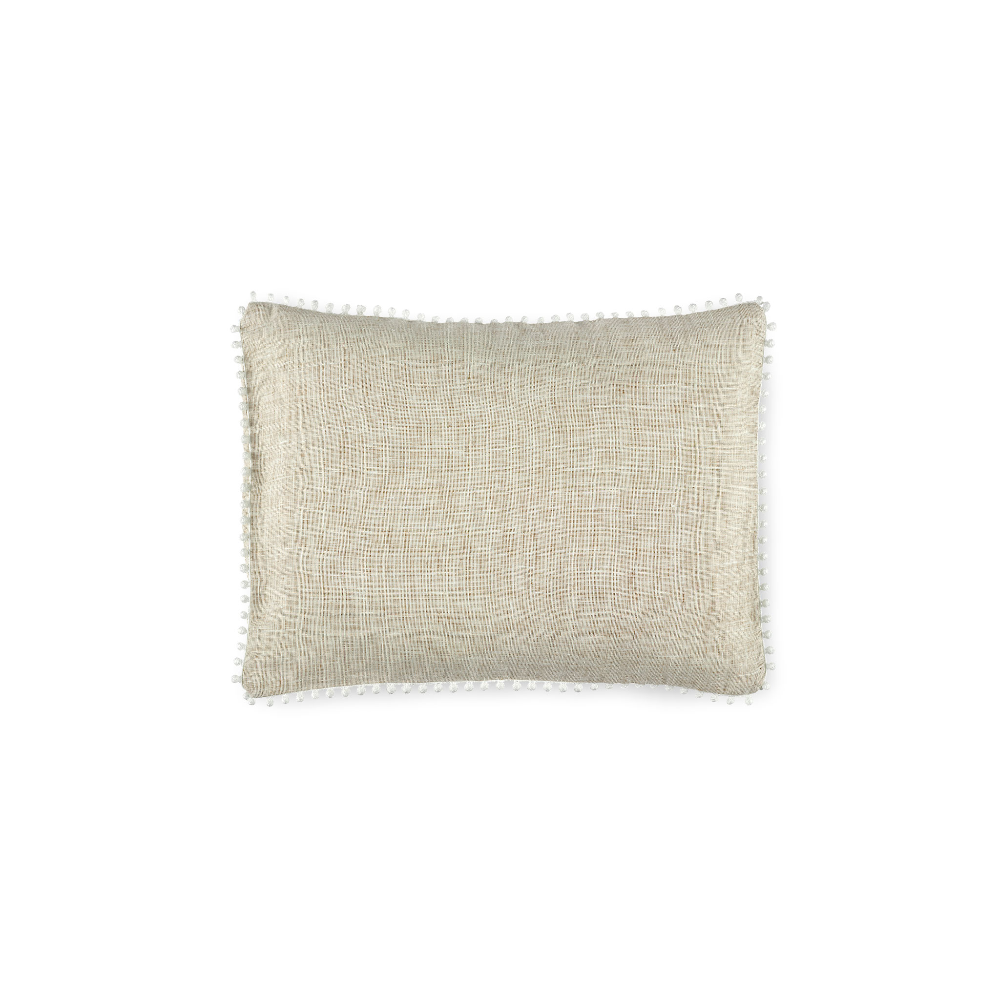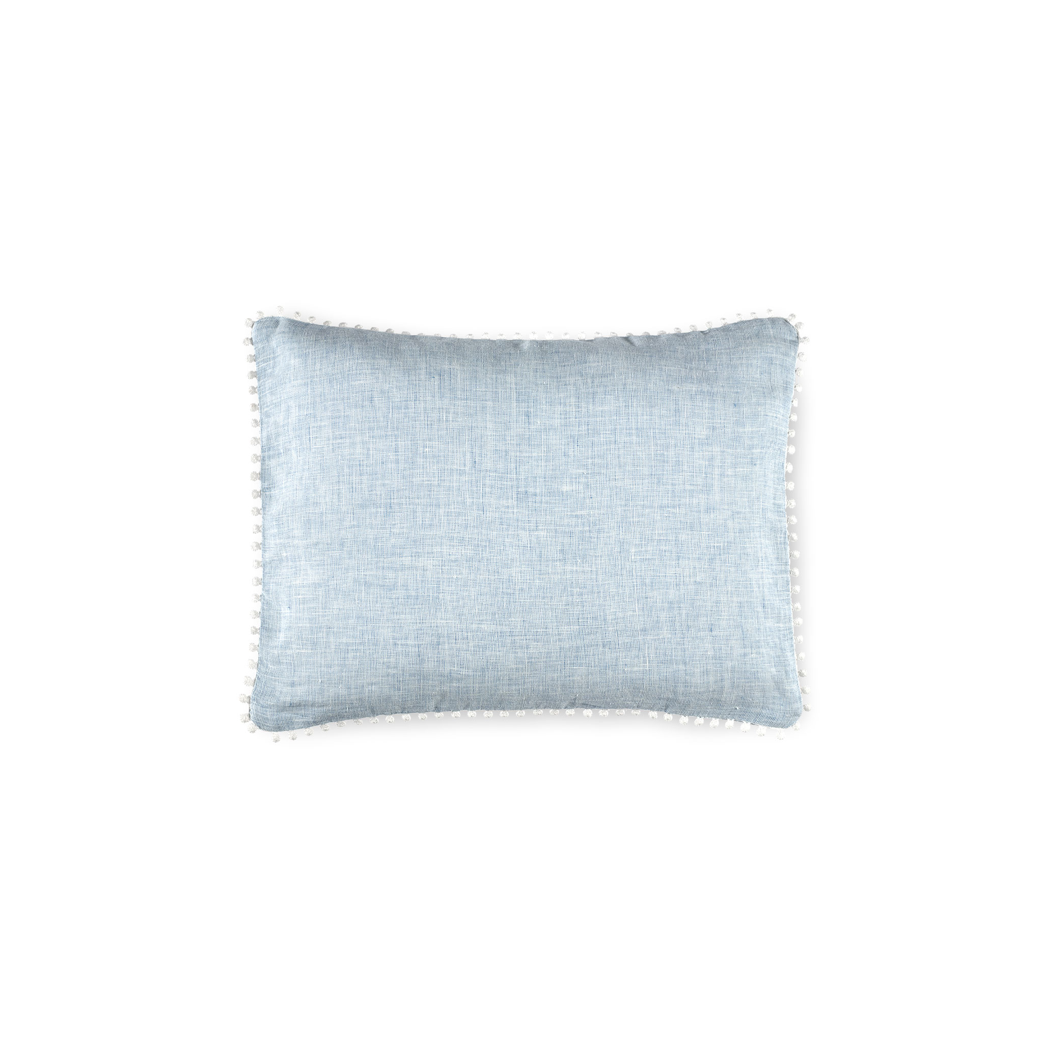 Woven from a stunning yarn-dyed linen by some of Europe’s finest craftsmen, this boudoir features a beautiful and timeless tailored pattern, combed with a playful pompom detail, that is both easygoing and elegant.