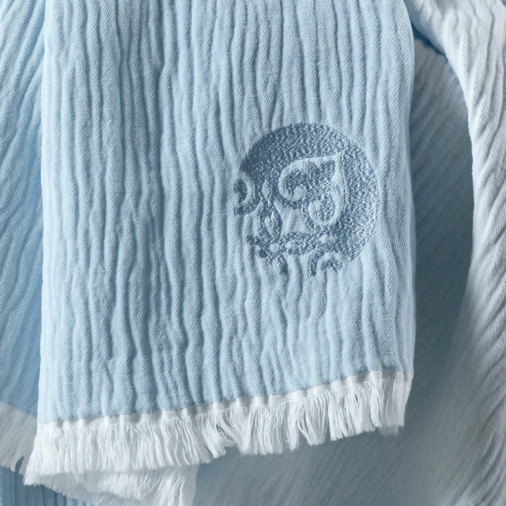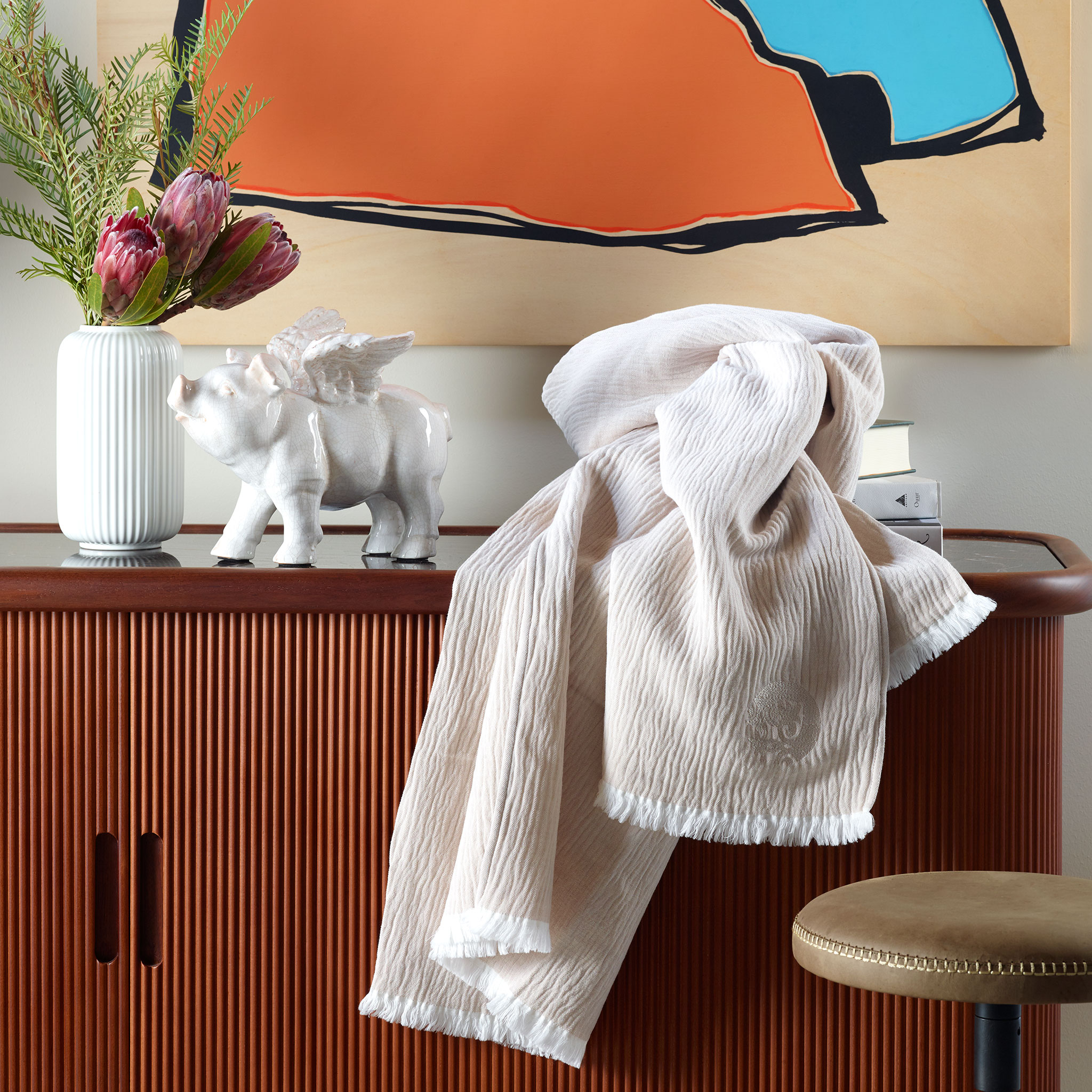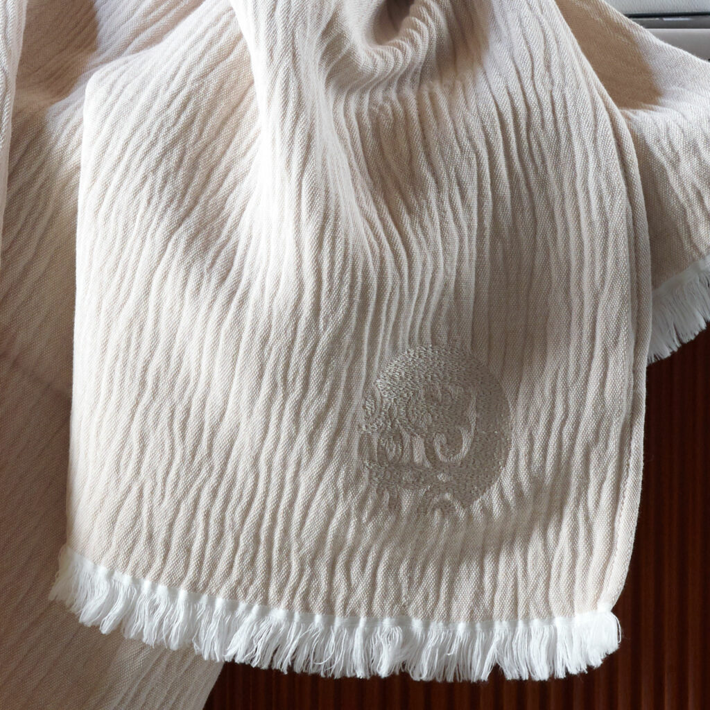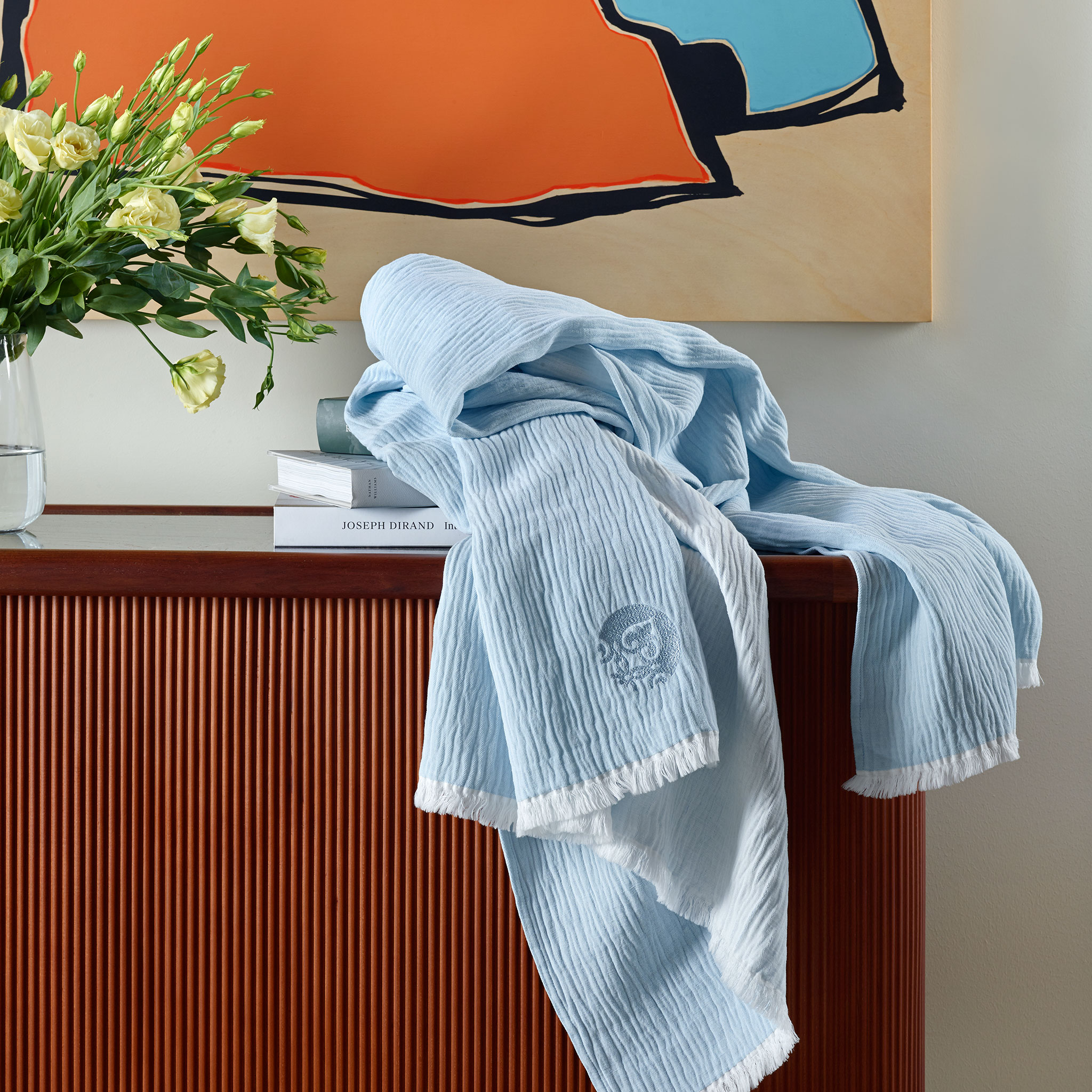 This throw is the result of a very soft blend of cotton and linen, featuring the unique Amalia Home Collection logo beautifully embroidered.